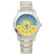 Montre avec drapeau de la ville Mesa, Arizona; drapeau jaune et bleu avec illustrations stylisées du désert, cactus et soleil levant