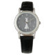 Montre personnalisée faite avec un arrière - plan gris classe. Illustration graphique d'une élégante robe blanche accrochée à un cintre. Design minimaliste simple.