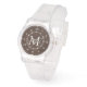 élégant monogramme personnalisé minimaliste élégant brun Silicone Strap Clear Watch vous pouvez changer la couleur de police, la taille et le style. grand comme cadeau des groomsmen, cadeau mariage et plus.