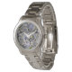 Fleurs violettes sur le visage d'une montre blanche argentée pour elle. Les pétales d'hydrangée de lavande légère sont teints en vert. Les femmes élégantes regardent sans chiffres.