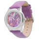 MONTRE FUCHSIA ROSE FLEURIES BLANCHES AVEC LE COEUR