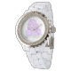 Un design élégant avec un gâteau violet à trois niveaux avec des rubans et des accents floraux.