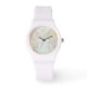 Un ange gardien blanc léger tient un coeur et est entouré de coeurs arc-en-ciel aux pieds de l'ange. Un halo jaune doré est au-dessus de la tête de l'ange. Les plumes sur les ailes de l'ange se forment en coeur. La peinture a été rendue avec un crayon aquarelle sur papier. Créez des modèles de montres d'ange gardien customisés avec vos messages personnels et/ou vos photos. Utilisez le bouton "customiser". L'art ange gardien fait de grands cadeaux personnalisés de montre poignet!