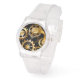 Cadran d'antiquités avec or et lances en laiton, décoré de libellules mécaniques sur arrière - plan brun rayé. Steampunk.