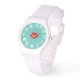 Design moderne personnalisé design turquoise, blanc et rouge bracelet avec le prénom et le nom du propriétaire. Les lettres sont situées sur le cadran au lieu des chiffres. La montre dit Amelia Smith. Au centre du cadran sont des lèvres rouges pour la couleur accent, au-dessus d'elles le nom rouge Amelia. Vous pouvez modifier la couleur de l'arrière - plan, la couleur de la lettre, la police, écrire votre prénom et votre nom en cliquant sur le bouton "Personnaliser", puis sur l'inscription "Cliquez pour customiser plus loin". Si vous ne pouvez pas écrire votre prénom et votre nom vous-même, veuillez me contacter dans un message personnel.