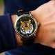 This watch features a orange black and white tiger with yellow eyes .There is a bright beautiful text in orange that says man cave.With black back ground. Back ground color can be change.This Realistic artwork is great for someone who loves to hunt, hunting guide or lodge, sportsman, outdoors man or animal lover.