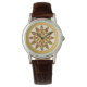 Motif mandala à douze points dans les tons chocolat, or moutarde, et brun foncé sur blanc, avec un arrière - plan or