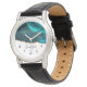 Une montre au style abstrait. Illustration de la pierre d'agate turquoise avec des couches de nuances variées. Un faux ruban de parties scintillant d'or court entre les couches de couleur. Design moderne et élégant.