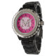 Monogramme à huile à quarterfoil rose chaud Monogramme à Motif à tissu personnalisé initial Montre à poignet