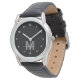 Monogramme personnalisé Monogramme noir et blanc avec chiffres blancs simples. Cette montre épurée et minimaliste allie style classique et touche personnelle, avec une initiale grise et audacieuse sur un visage noir accentué par des chiffres blancs simples pour une lecture facile. Le design comprend un nom de script blanc élégant, ajoutant un élément subtil et personnalisé qui rend cette montre vraiment unique. Idéal pour des vêtements de tous les jours ou des occasions spéciales, c’est un cadeau idéal pour les anniversaires, les vacances ou simplement parce que. Avec sa calligraphie épurée et ses couleurs intemporelles, cette montre personnalisée est un accessoire chic mais pratique pour toute armoire.