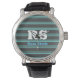 Montre Monogramme & nom en gras, Lt Turquoise Lines sur g
