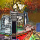 Une conception artistique d'une cheminée à canot étroit et d'une ancienne lampe décorée.Les bateaux de canal, connus au Royaume-Uni comme des bateaux à canon étroit, ont été utilisés à l'origine pour transporter des marchandises à travers le pays. Ils sont maintenant utilisés principalement pour les loisirs et attirent des gens du monde entier pour profiter de notre campagne rurale. Ces bateaux sont très jolis avec leurs cabines aux couleurs vives, traditionnellement bleu, rouge ou vert. Des fleurs et des dessins de château ornent également les bateaux plus traditionnels.