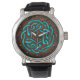 Montre Noeud celtique bleu émaillé sur art numérique en c