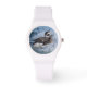 Une femelle Oldsquaw Le canard à longue queue perche sur la glace qui flotte dans les eaux bleues de l'océan. Les adultes ont des sous-parties blanches, bien que le reste du plumage passe par un processus de mue complexe. Le mâle a une longue queue pointue (10 à 15 cm (3,9 à 5,9 po) et un bec gris foncé traversé par une bande rose. En hiver, le mâle a un timbre foncé sur une tête et un cou principalement blancs, une poitrine foncée et un corps principalement blanc. En été, le mâle est foncé sur la tête, le cou et le dos avec un timbre blanc. La femelle a un dos brun et une queue pointue relativement courte. En hiver, la tête et le cou de la femelle sont blancs avec une couronne foncée. En été, la tête est sombre. Les juvéniles ressemblent à des femelles adultes en plumage d'automne, mais avec un timbre plus léger et moins distinct.