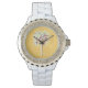 Montre De Palmier Jaune. Cette collection présente de jolis objets mignons et preppy, représentant une peinture jaune canari colorée représentant un joli palmier tropical. Design tropical chic, girly et preppy. Voir aussi Empreintes de palmiers, cartes de palmiers, enveloppement cadeau de palmiers, cadeaux de palmiers.