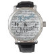 Partition écrite par Mozart sur une montre Vintage en cuir noir pour hommes. Cadeau pour l'amoureux de la musique ou l'amour de la musique super professeur de musique qui est dans votre vie. Cette montre vintage pour hommes avec bracelet en cuir et un grand cadran ne sera jamais démodée. Avec un mouvement à quartz 3 aiguilles et un bracelet en cuir véritable, cette montre classique est parfaite pour les occasions formelles ou décontractées. Personnalisez le cadran avec votre nom et vos designs pour une montre qui reflète votre style et personnalité.