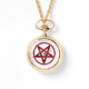 Pentagramme rouge, inversé, texturé en cercle, sur arrière - plan blanc. Symbole occulte 666