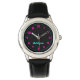 Help kids master time with flair! This bold wristwatch features a sleek black face with bright pink hour numerals and turquoise minute markers, designed to make analog time-telling fun and easy. The clearly labeled “HOUR” and “MINUTE” hands support early learners, while the vibrant color scheme adds a playful twist.