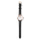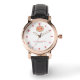 Elevate your look with this elegant women’s watch featuring a crisp white dial and a regal monogram emblem accented in red and gold. The rose-gold case and white leather strap create a luxurious, refined appearance suitable for both everyday wear and special occasions.