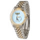 Ce design personnalisé de bracelet à deux tons e-watch dispose d'un chat noir "atomique" moderne rétro du milieu du siècle avec de grands yeux jaunes et une queue bouclée. Vous pouvez facilement modifier l'orthographe du texte, le style de police, la couleur et la taille avec le bouton Personnaliser Zazzle.