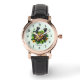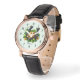 Regarder avec une image sur le thème de la Saint Patrick. Un fer à cheval noir et or assis dans un lit de trèfle vert avec des pièces d'or brillantes.