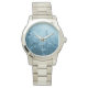 Une jolie et élégante montre à poignet avec une scène de fleurs bleu éthérée.