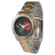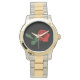 Cette jolie montre présente une rose rouge simple avec des feuilles verts posés sur un arrière - plan noir pur.