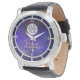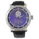 Un design élégant en zodiaque avec une bordure bleu foncé, des étoiles de galaxie avec le signe zodiaque Gemini dessus. Customisez facilement cette montre à votre nom et date de naissance. - conçu avec les Zaubershirts -