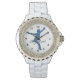 Cette montre personnalisée présente une silhouette d'un homme patinage sur glace et un modèle texte pour votre nom.