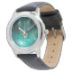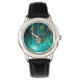 Or, clés antiques avec engrenages et cadrans accrochés sur chaînes dorées sur arrière - plan vert lumineux.