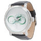 Le symbole de l'infinity with a bright, green, artistic peacock feather on a white background. Tattoo style.