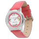 Pour n'importe quel amoureux des chiens, cette montre se lit : "Le temps passé avec des chiens n'est jamais gâté" et présente quatre de mes toiles de levain fantaisistes avec des empreintes de pattes et des boules rouges - et l'arrière - plan est un motif de pois rouge ludique. Il y a un caniche, un dachshund, un récupérateur d'or et un terrier. Oeuvre et design originaux de Tuzi Williams.