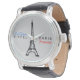 Il est toujours temps de visiter la tour Eiffel. Illustration stylisée en noir. La couleur gris arrière - plan est personnalisable
