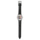 un squelette grippé dans un vélo de pandemonium. Il a un pantalon en cuir noir et des bottes de moto et une veste en cuir noir avec un design osseux sur la tenue de cale.Le soleil couchant derrière lui. La brume qui monte de l'entourage jusqu'à la nuit sombre, il s'éloigne avec des étoiles de nuit au-dessus.