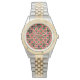 Cette montre pour hommes a un design géométrique de triangles rouge et rouge profond répétés avec des cercles verts sur un champ de blanc cassé. Voulez-vous le même design dans des couleurs différentes? Message-moi.