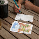 Diese Postkarte zeigt ein Aquarellbild des Monument Valley an der Grenze zum Arizona Utah.