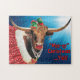 Karo Out My ~ "CHRISTMAS STORE" ~...www.zazzle.com/holidayvisions! Genießen Sie dieses komische Weihnachtspuzzle zusammen mit Familie und Freunden! Es ist mit einer klassischen Longhorn Kuh ausgestattet, die ihr Weihnachtskap, Schmuck, Haarbow und Schmuck trägt...und allen ein..."MOO"~EY CHRISTMAS Y'ALL! Dieses originelle "One of a Art" Art Design wurde von dem Künstler Kerry Miller entworfen.
