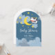 Ce design baby shower sucré présente un ciel nocturne, une vache et un croissant de lune. Choisissez la forme voûtée pour une touche moderne.