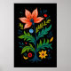 Add a touch of enchanting, sophisticated mystery to your walls with this spectacular dark botanical poster. This vertical wall art showcases a wonderfully vibrant folk art illustration of a symmetrical floral tree. The brilliant orange, yellow, and red blossoms stand out beautifully against a rich, deep black canvas texture, perfectly capturing the highly sought-after "dark cottagecore" aesthetic.