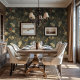 Moody-Blumentapete mit Blume und Vögeln Tapete