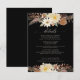 "Moody BOHO Modern Fall Floral Watercolor Schwarz, Bio Herbst Erdfarben über einen reichen schwarzen Hintergrund, mit Kalligraphie Skript Details Gehäuse Karte." Modernes Design mit handgemalten Aquarellfarben und getrocknetem Blattwerk mit Pampas Grass für ein gedämpftes, erdig Bohemisches Hochzeitstil. Schriftzeichen-Typografie mit Schnörkeln. Die Kunst wurde von Audrey Jeanne Roberts, einer international anerkannten Künstlerin und Designerin, erstellt und grafisch gestaltet.