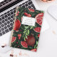 Personalisieren Sie diesen Planer mit Ihrem Namen in dunkelgrün kursiv gerahmt durch ein weißes Rechteck, auf einem moodisch botanischen Muster roter Granatfrüchte und grünes Blattwerk auf einem dunkelgrünen Hintergrund.