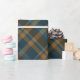 This sophisticated wrapping paper features a dark and moody diagonal tartan plaid in rich, earthy colors. The pattern expertly combines deep navy blue and dark brown/olive tones, strikingly crossed by lines of warm copper and burnt orange. This design offers a rugged yet elegant, gender-neutral look, making it perfect for autumnal celebrations, Father's Day, or upscale men's gifts. Choose this adventurous, stylish plaid for a truly memorable and masculine presentation.