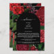 Ein schönes Design mit bordeauxroten Vintagen dunklen Blumen auf schwarzem Hintergrund und einem schwarzen Bogen. Ideal für alle, die launische Vintage Blume-Designs und dunkle Farbtöne Lieben. Ein elegantes, schwarz-rot-maronfarbenes Retro-Blumendesign. Eine Wildblume und Rose Hochzeitsreise Programm Design mit modernen Elementen. Auch die passenden Hochzeitseinladungen und andere Schreibwaren sind verfügbar.