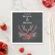 Dunkelmoodie, gotische Hochzeitsnapkins mit Namen und datiert in Old English Goth Kalligrafie - Holzkohle schwarzer Hintergrund mit offenem Flügelschläger und getrocknetem Blumenspray in Holzrose und schwarz - leicht zu individualisierende Vorlage - Entworfen von WhimsicalArtwork™ für den BarefootBride ™.