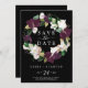 Diese lila schwarze Ankündigung Datum freihalten ist perfekt für eine moderne Hochzeit. Das elegante Blumendesign besticht durch lila und weiße Tulpenmuster-Blume mit smaragdgrünen Blätter und goldenen Blattakzenten.