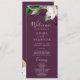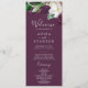 Dieses stimmungsvolle lila Blütenprogramm eignet sich perfekt für eine moderne Hochzeit. Das elegante Blumendesign besticht durch lila und weiße Tulpenmuster-Blume mit smaragdgrünen Blätter und goldenen Blattakzenten. Geben Sie den Namen der Braut und des Bräutigams, das Datum und den Ort der Hochzeit, Dankeschön-Nachricht, Dienstordnung, Brautparty und ein optionales "in Loving Memorial" ein.