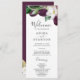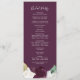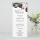 Dieses stimmungsvolle, lila Hochzeitsprogramm ist perfekt für eine moderne Hochzeit. Das elegante Blumendesign besticht durch lila und weiße Tulpenmuster-Blume mit smaragdgrünen Blätter und goldenen Blattakzenten. Geben Sie den Namen der Braut und des Bräutigams, das Datum und den Ort der Hochzeit, Dankeschön-Nachricht, Dienstordnung, Brautparty und ein optionales "in Loving Memorial" ein.
