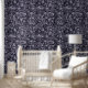 Moody Monochrome Deep Navy Blue Floral Muster Tapete