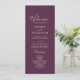 Ce programme de mariage de prune mauve et mauve est parfait pour un mariage moderne. L'élégante décoration de bijoux en boho est composée d'une solide couleur violet aubergine foncée et d'une touche bohème moderne. Coordonnées avec la collection Moody Purple Blooms de Fresh & Yummy Paperie. Inclure les noms du couple, la date et l'emplacement du mariage, le message de remerciement, l'ordre de service, la fête de mariage et un mémorial optionnel "en mémoire d'amour".